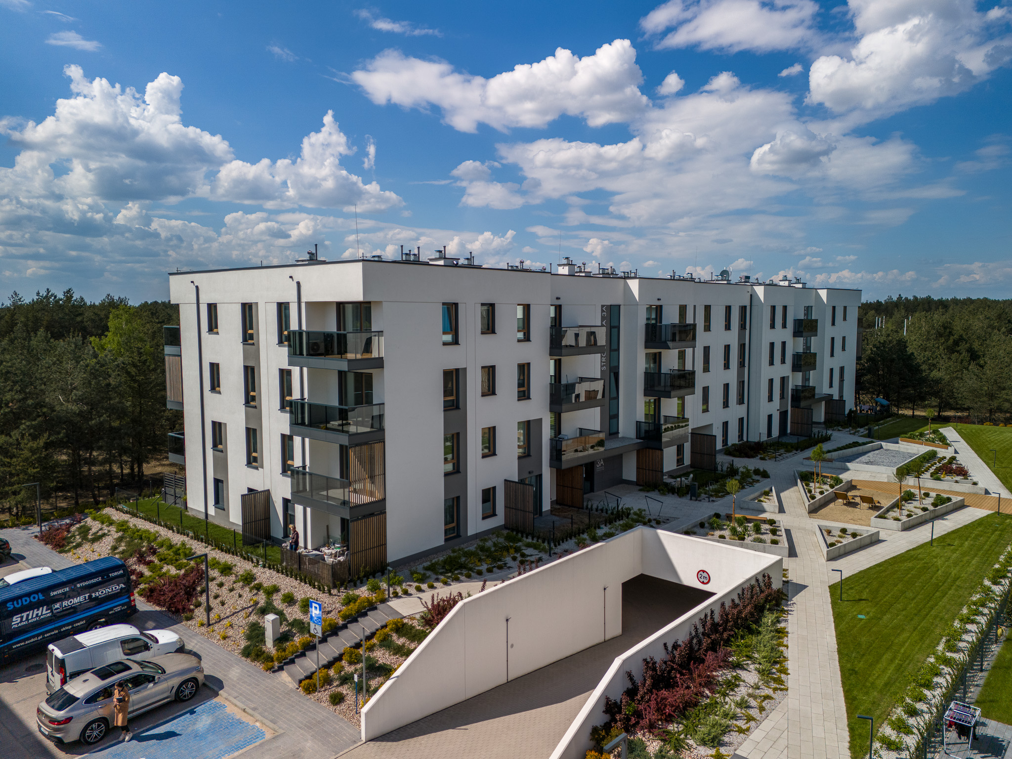Osiedle, na którym znajduje się mieszkanie to nowoczesna propozycja dewelopera Lem-bud. Inwestycja nosi nazwę „Osiedle Harmonia” i składa się z kameralnej – 3 piętrowej zabudowy, zaprojektowanej i wykonanej z dbałością o szczegóły. Na terenie osiedla uwzględniono dużą ilość nasadzeń oraz utworzono oczka wodne w celu stworzenia komfortu odpoczynku mieszkańców, a całe osiedle położone jest w otulinie lasu.