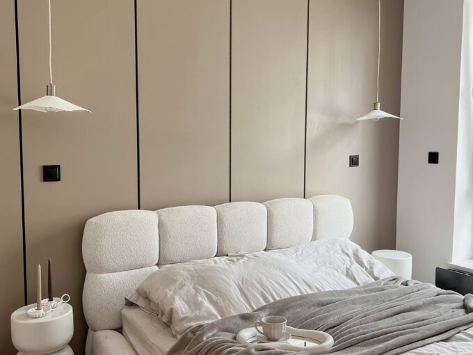 Apartament wyróżnia się dużymi przeszkleniami, które doskonale doświetlają wnętrza. Wnętrza utrzymane są w minimalistycznej, jasnej stylistyce, zaaranżowanej z dbałością o każdy detal.