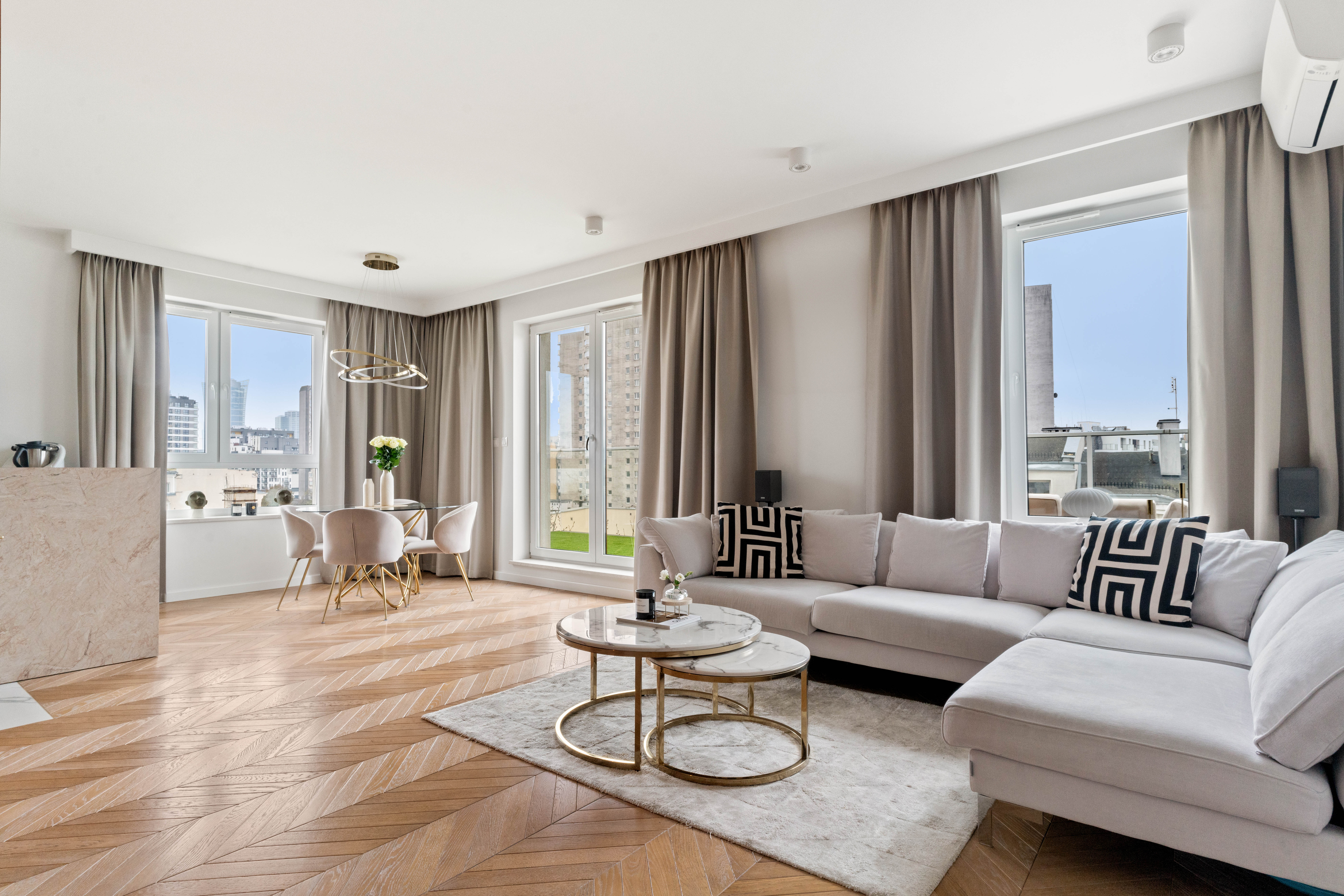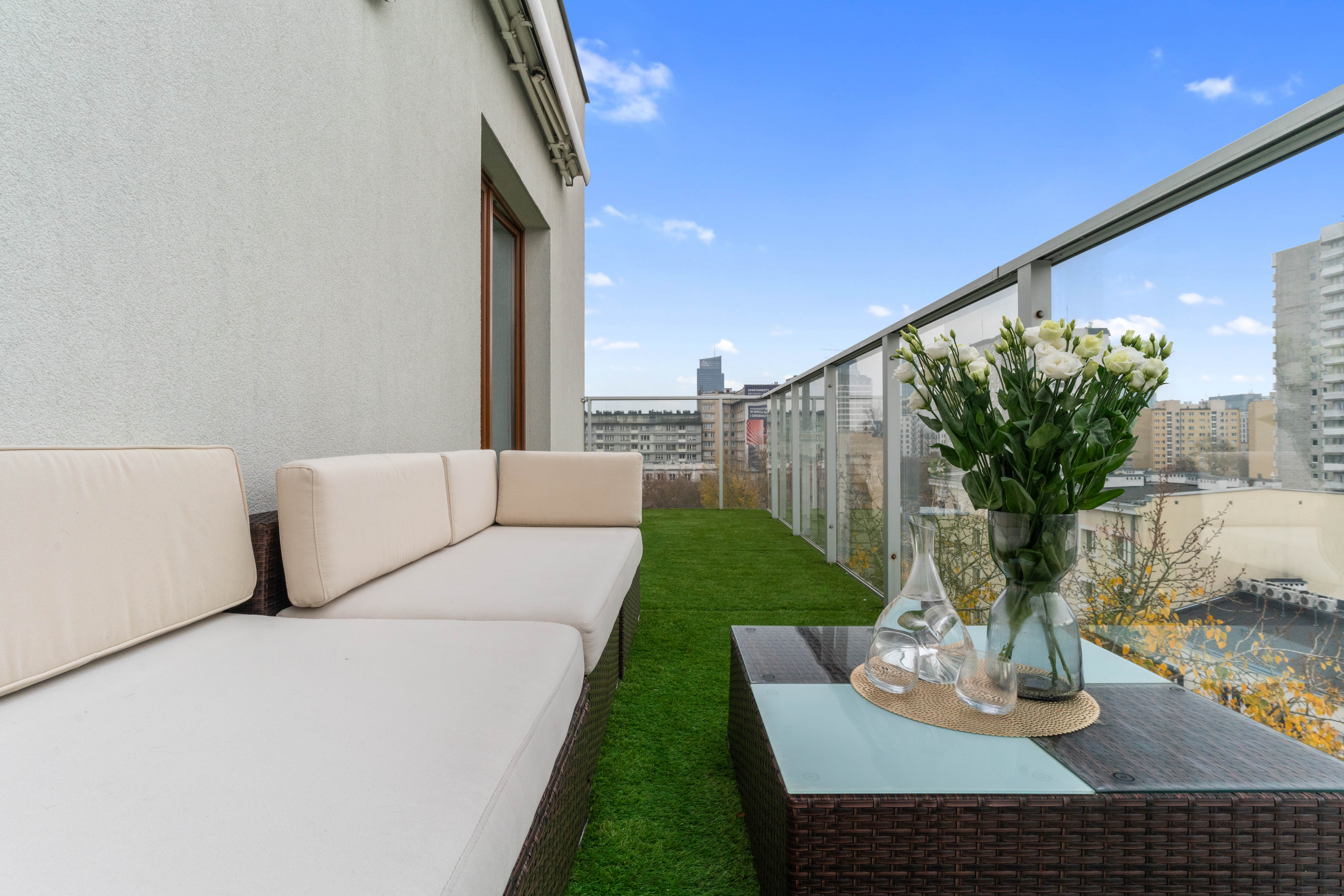Mieszkanie jest bardzo przestronne – z dużym, umeblowanym tarasem oraz klimatyzacją.