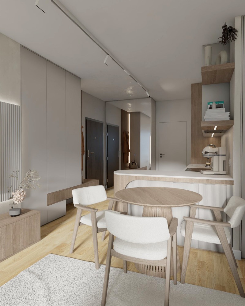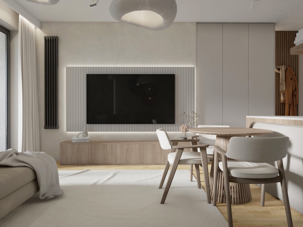• Salon z aneksem kuchennym – 27,14 m²