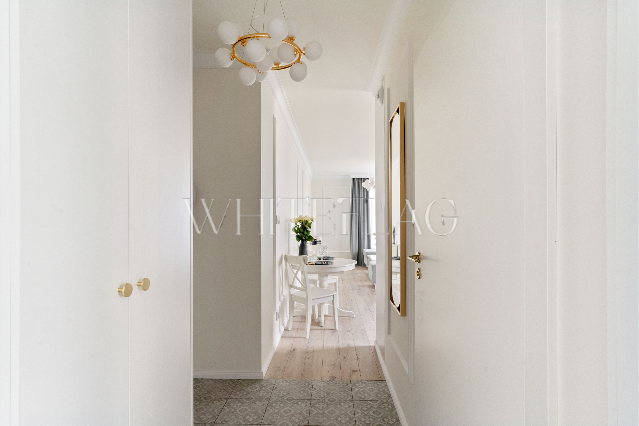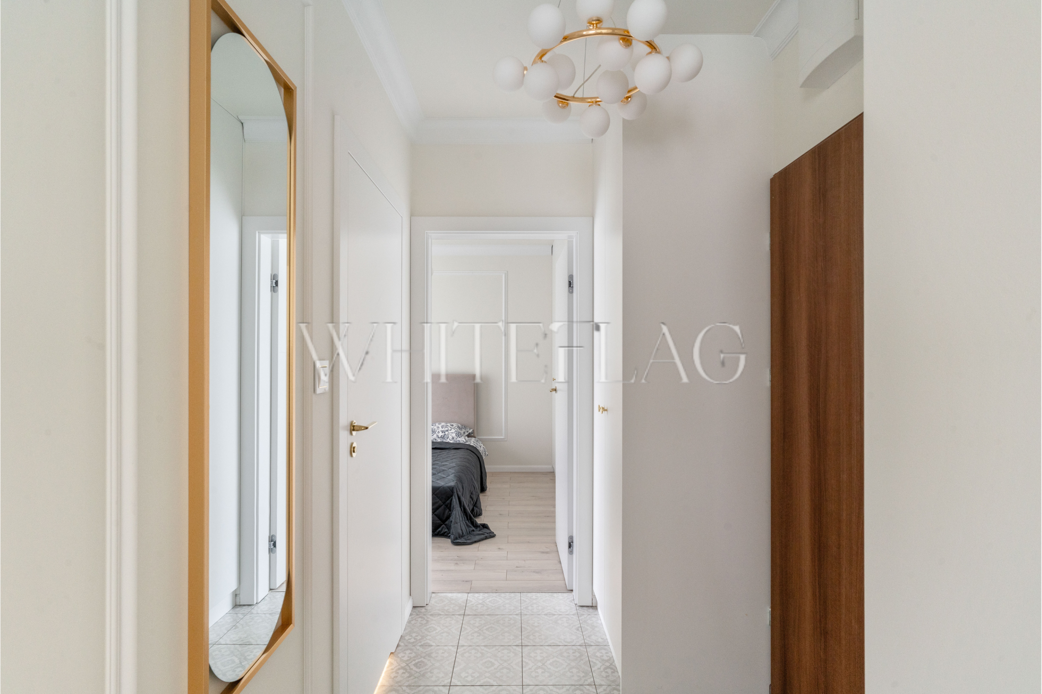 Meble w kuchni, sypialni i na korytarzu zostały zaprojektowane na wymiar, dzięki czemu wszystko jest spójne, a w mieszkaniu jest mnóstwo przestrzeni do przechowywania.